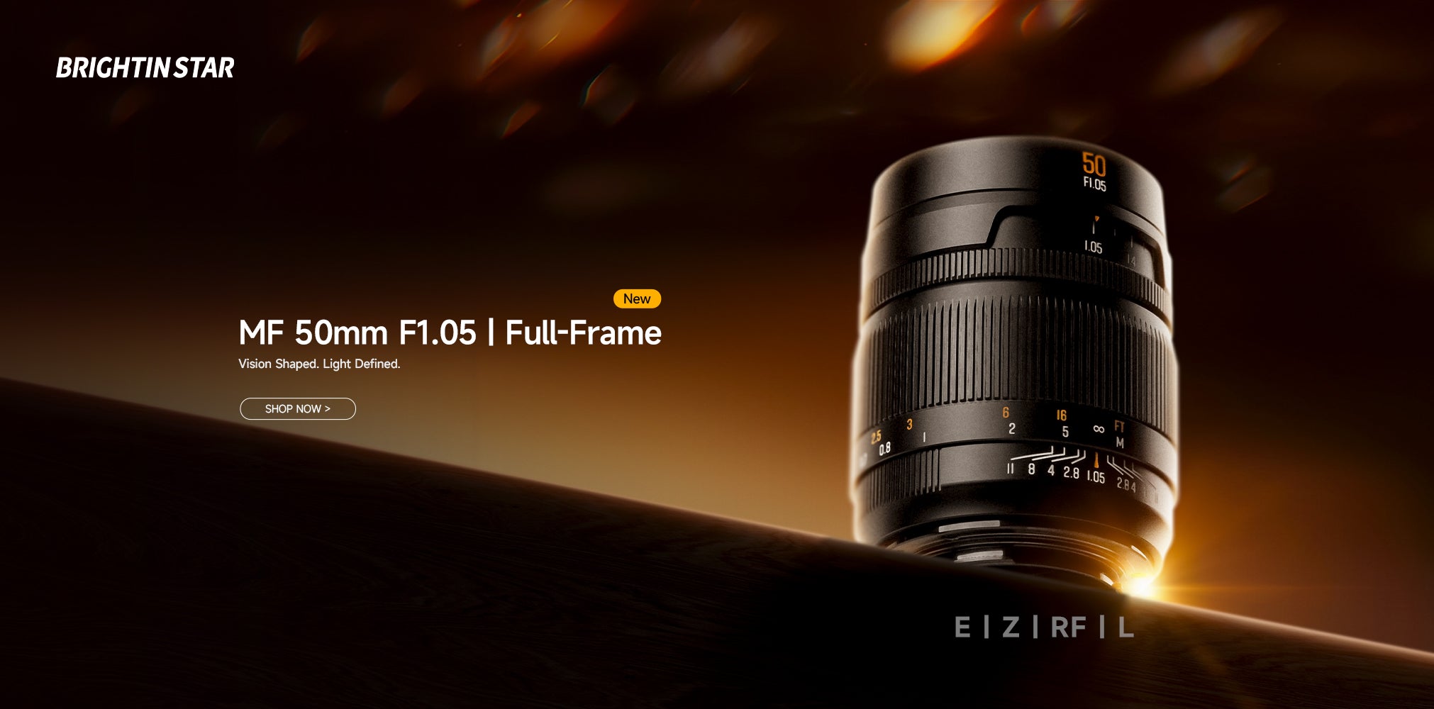 Brightin Star | Full frameSize, weight: 55*42mm, 218gMount: Canon RF, Sony E mount, L mount, Nikon ZBeyond the Ordinary – Compact, Sharp, Versatile.Capture the Moment, Embrace the Light.