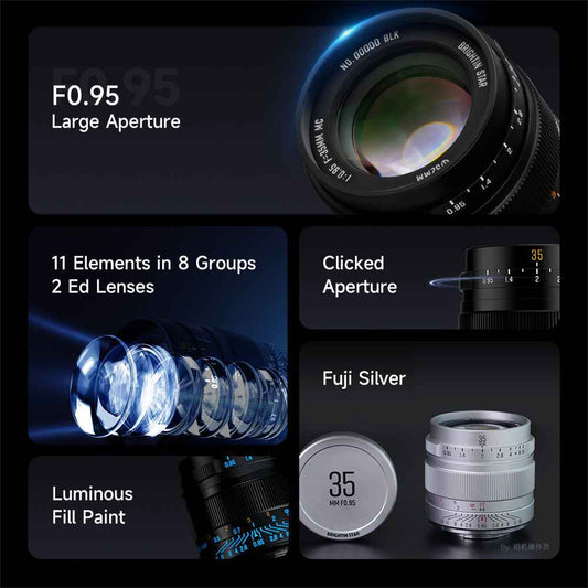 Brightin Star 35mm F0.95 APS-C Night God Portrait Star Manual Fixed Focus Lens Suitable For Fuji X/Canon M/RF/M43/Sony E/Nikon Z