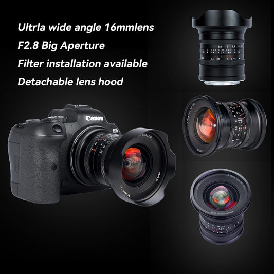 16mm F2.8 Full Frame Ultral Wide Angle Manual Focus Mirrorless Camera Lens, Fit for Canon RF Mount