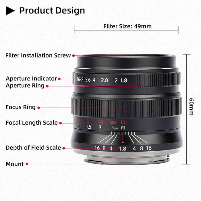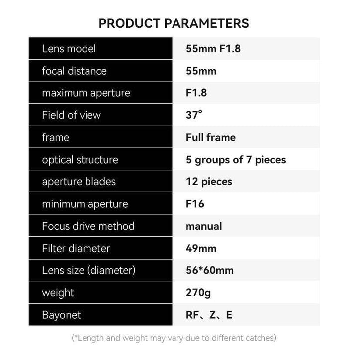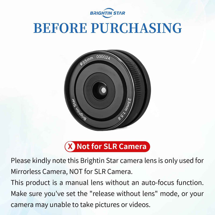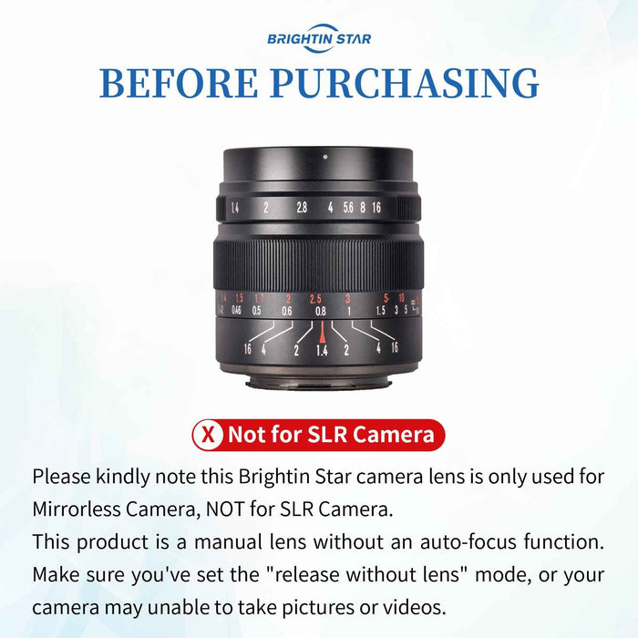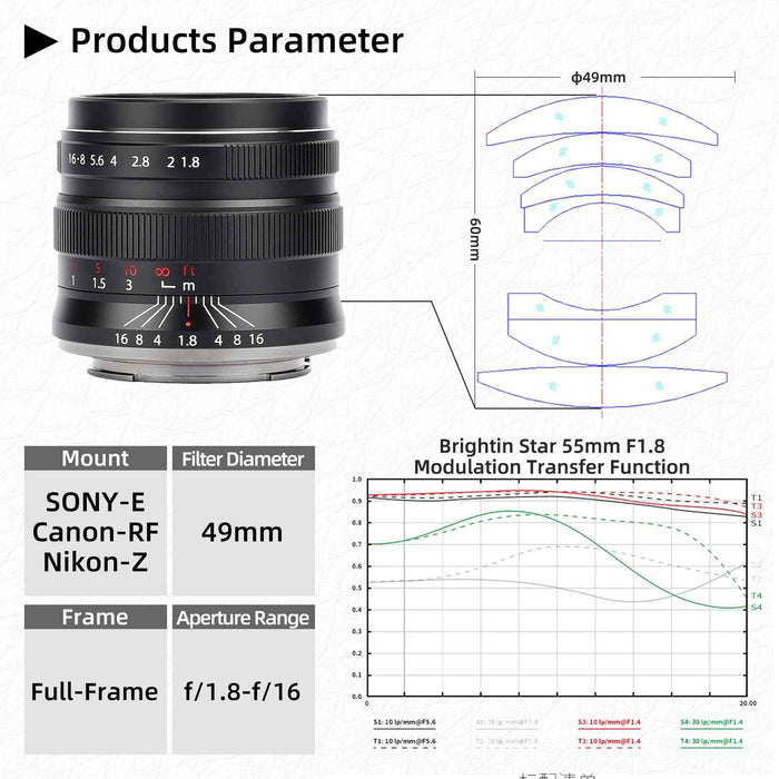 Brightin Star 55mm F1.8 Full Frame Large Aperture Manual Focus Mirrorless Camera Lens