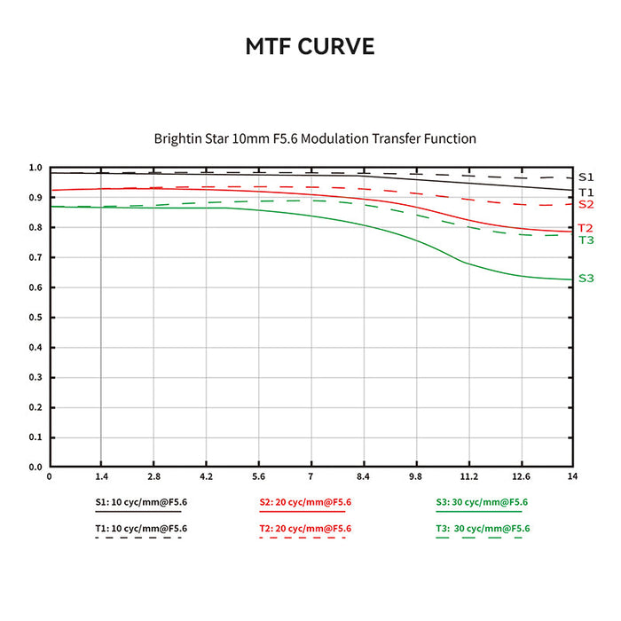 - Full aperture resolution 30 line pairs over 0.7, with high resolution