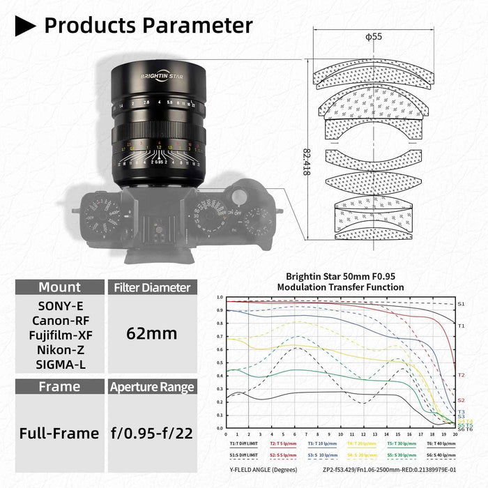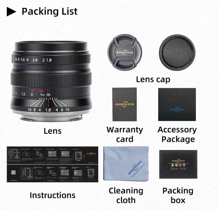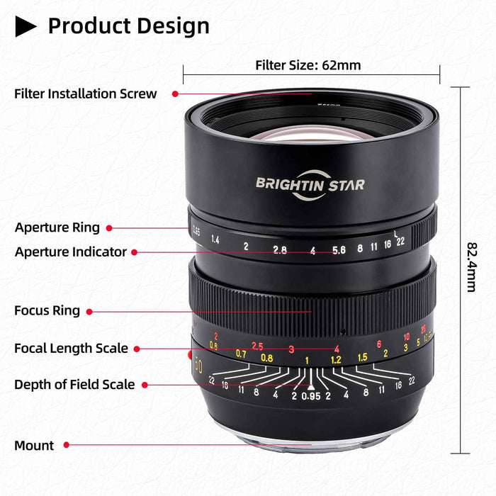 Brightin Star 50mm F0.95 Full Frame Large Aperture Manual Focus Mirrorless Camera Lens