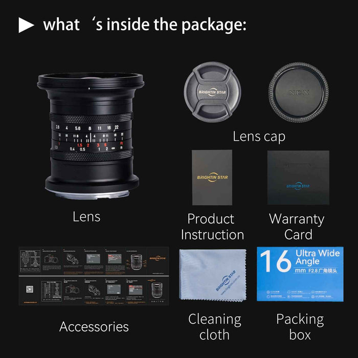 Brightin Star 16mm F2.8 Full Frame Ultral Wide Angle Manual Focus Mirrorless Camera Lens