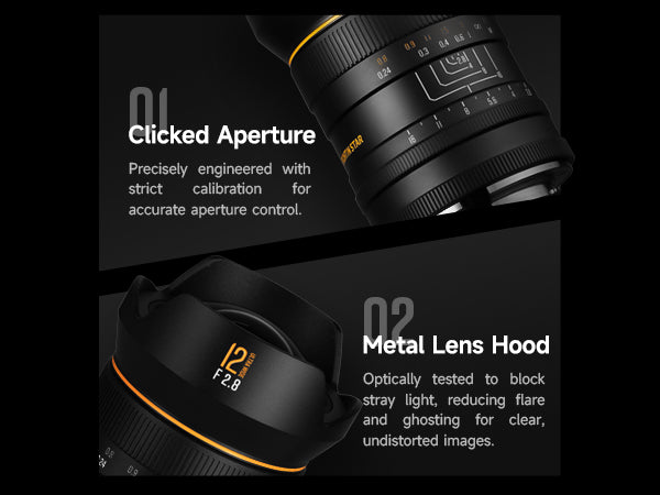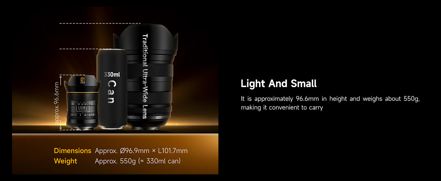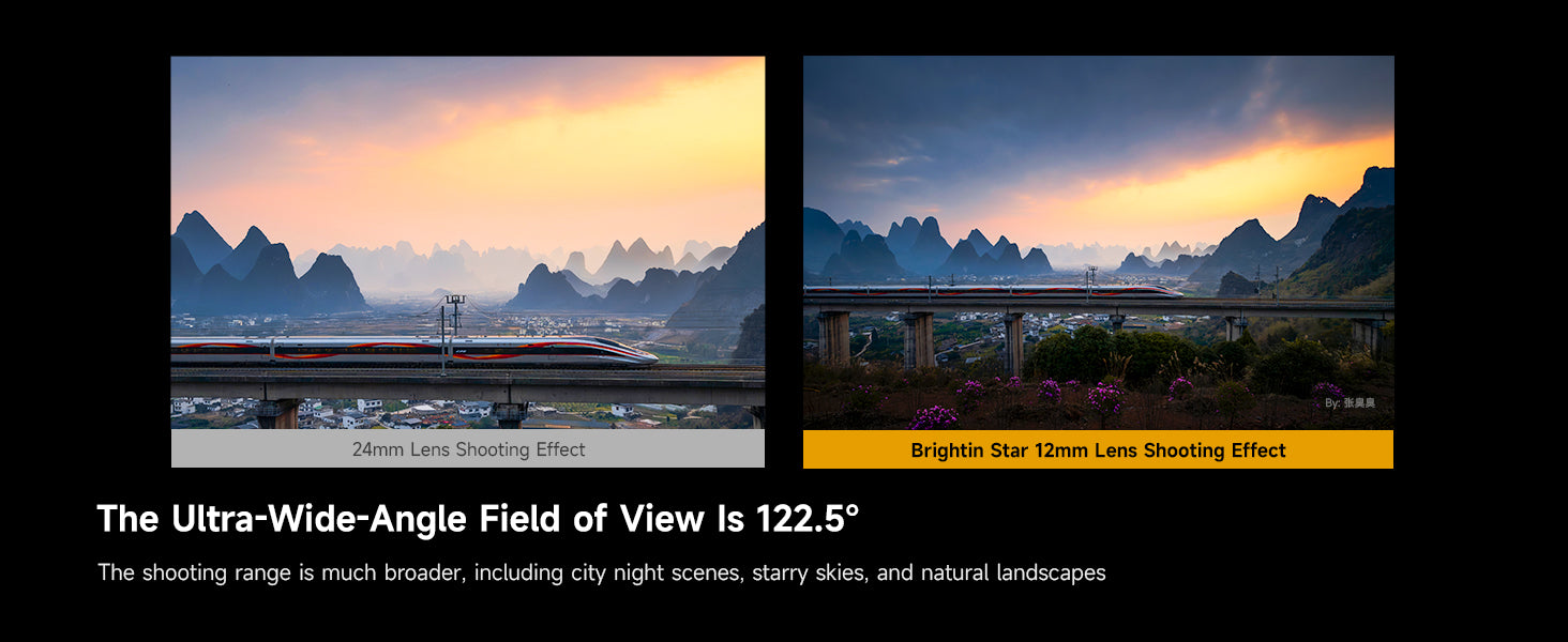 ¡ñCompact and lightweight: Weighing only 1.2 lbs, roughly the weight of a bottle of water, the Brightin Star 12mm F2.8 Lens significantly reduces the carrying burden for photography enthusiasts.