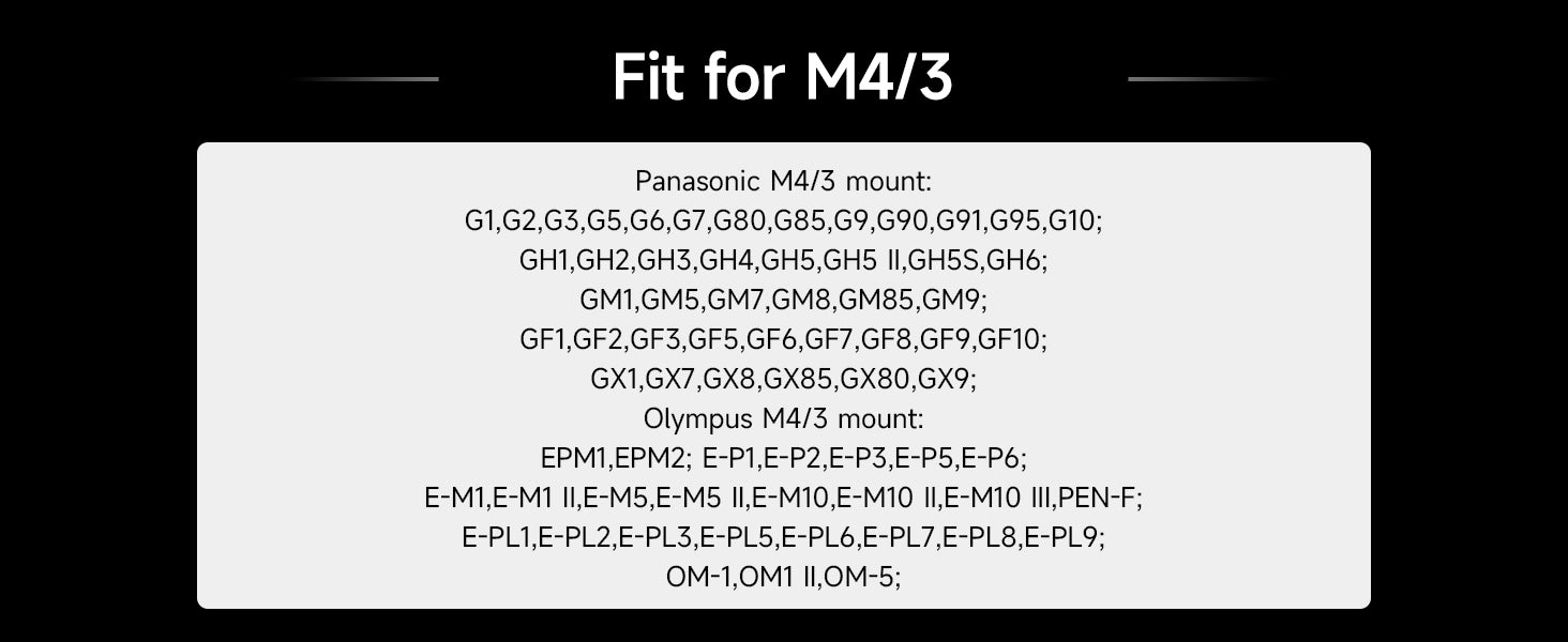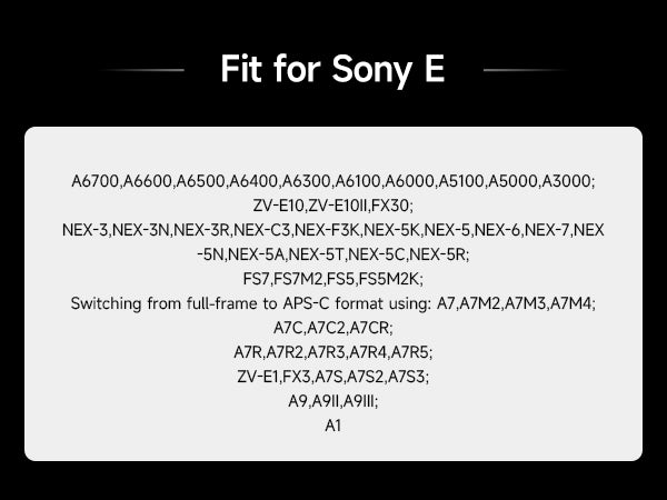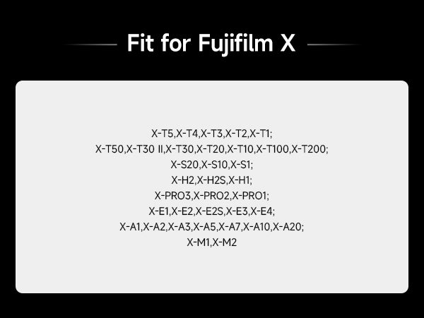Fit for Fuji X Mount: X-PRO1 X-PRO2 X-E1 X-E2 X-E3 X-H1 X-T1 X-T10 X-T2 X-T3 X-T20 X-T30 X-T100 X-A1 X-A10 X-A2 X-A3 X-A5 X-A20 X-M1...