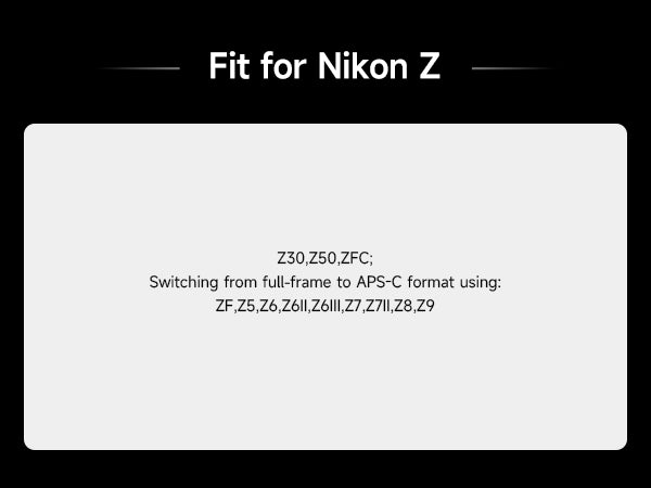 Fit for Nikon Z Mount:Z-6II, Z-7II, Z5, Z50, Z9, Z50, Z-FC, Z30...