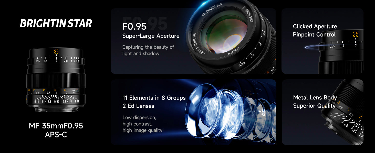 #brightinstar #brightin 35mm Lens #brightinstar 35mmF0.95#Brightin Star #Brightin Star APS-C #35mm Lens #F0.95 Super Large Aperture #Manual Focus Lens #Mirrorless Camera Lens #Canon EOS-M Mount #Canon RF Mount #Nikon Z Mount #Sony E Mount #M4/3 Mount #Fuji X Mount #Portrait Lens #Food Photography #Pet Photography #Still Life Photography #Night Photography #Low Light Lens #Shallow Depth of Field #Bokeh Lens #Street Photography #Documentary Lens #HD Lens #ED Lens #Metal Lens Body #Aviation Aluminum #CNC Anodized #Movie-Grade Lens #Aurora Aperture #Manual Aperture Control #Release Without Lens #35mm Focal Length #8 Groups 11 Elements #High Refractive Index Glass #Lens Dispersion Control #Sharp Edge-to-Edge #Cinematic Lens #Compact Lens #Lightweight Lens #62mm Lens Diameter #Brightin Star 35mm F0.95#Luminous Version