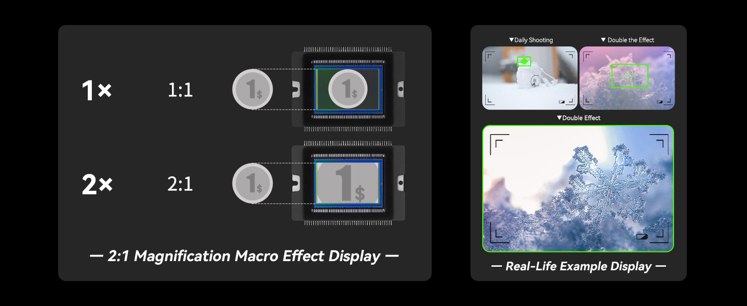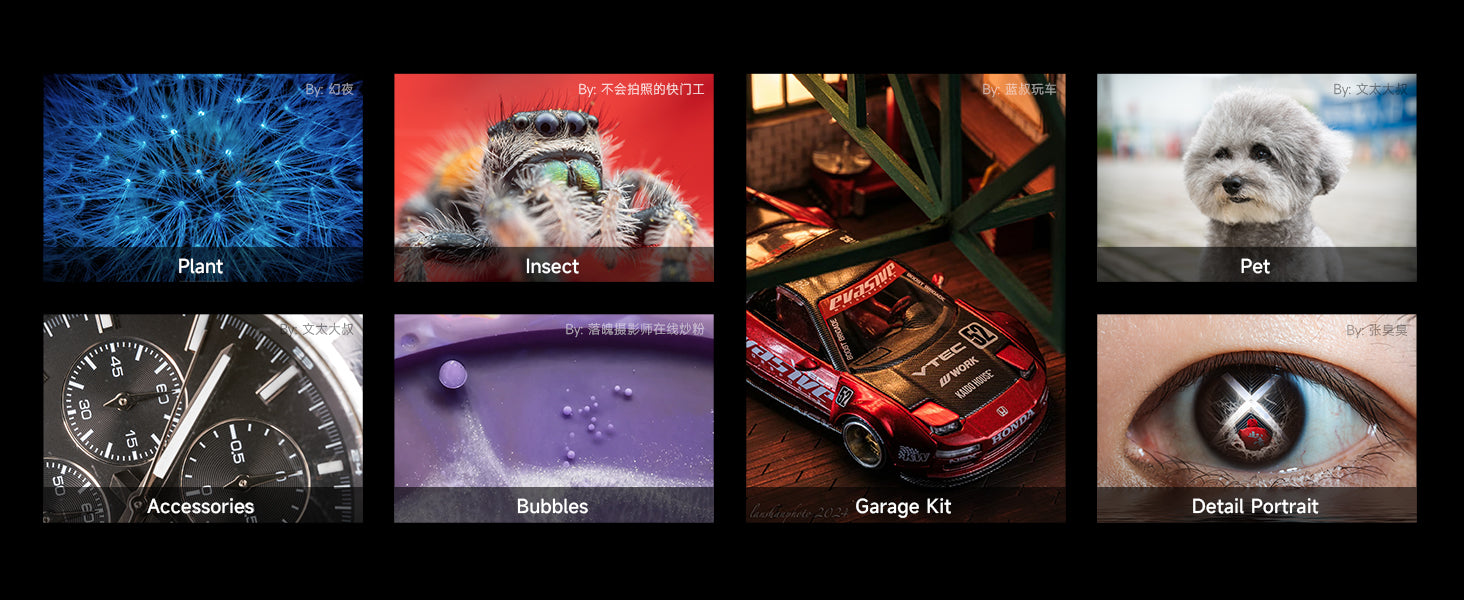Brightin Star | Full Frame LensSize, weight: 68*118mm, 660gMounts: Fuji X, Canon EF-M, Nikon Z, Sony E, CanonRF, M4/3Scenes: Insects, Snowflakes, Flowers, Still Life, People2:1 double zoom, more visual impact