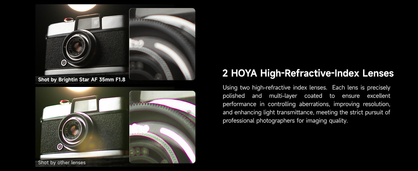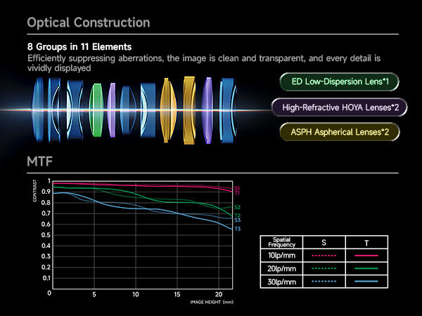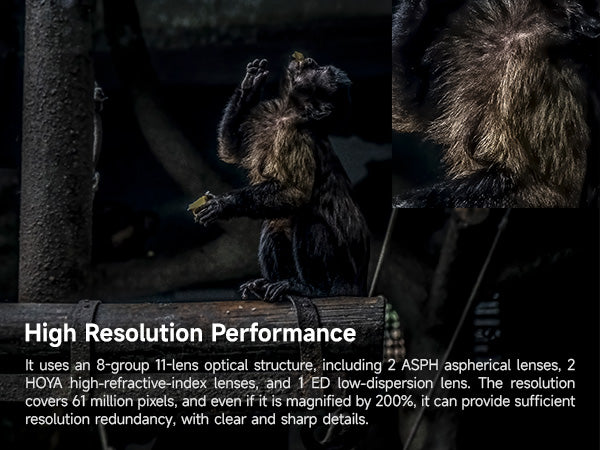 ¡ñ High Resolution Performance£ºIt uses an 8-group 11-lens optical structure, including 2 ASPH aspherical lenses, 2 Japanese HOYA high-refractive-index lenses, and 1 ED low-dispersion lens. it can provide sufficient resolution redundancy, with clear and sharp details.