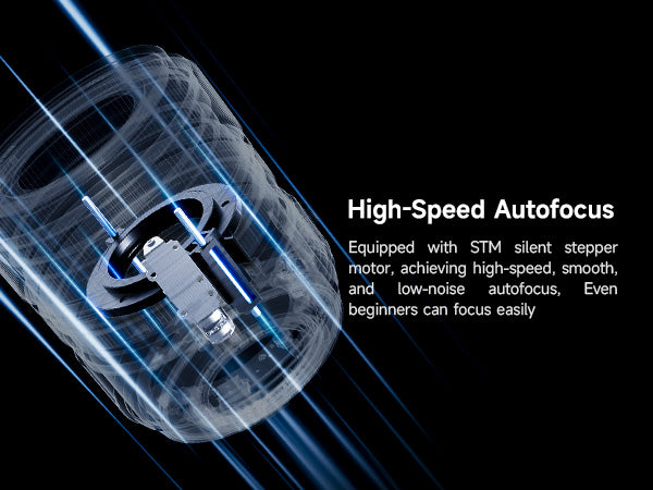 ¡ñ High-Speed Autofocus£ºEquipped with STM silent stepper motor, achieving high-speed, smooth, and low-noise autofocus, Even beginners can focus easily.