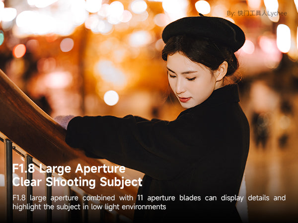 ¡ñ F1.8 Large Aperture: F1.8 large aperture combined with 11 aperture blades can display details and highlight the subject in low light environments.
