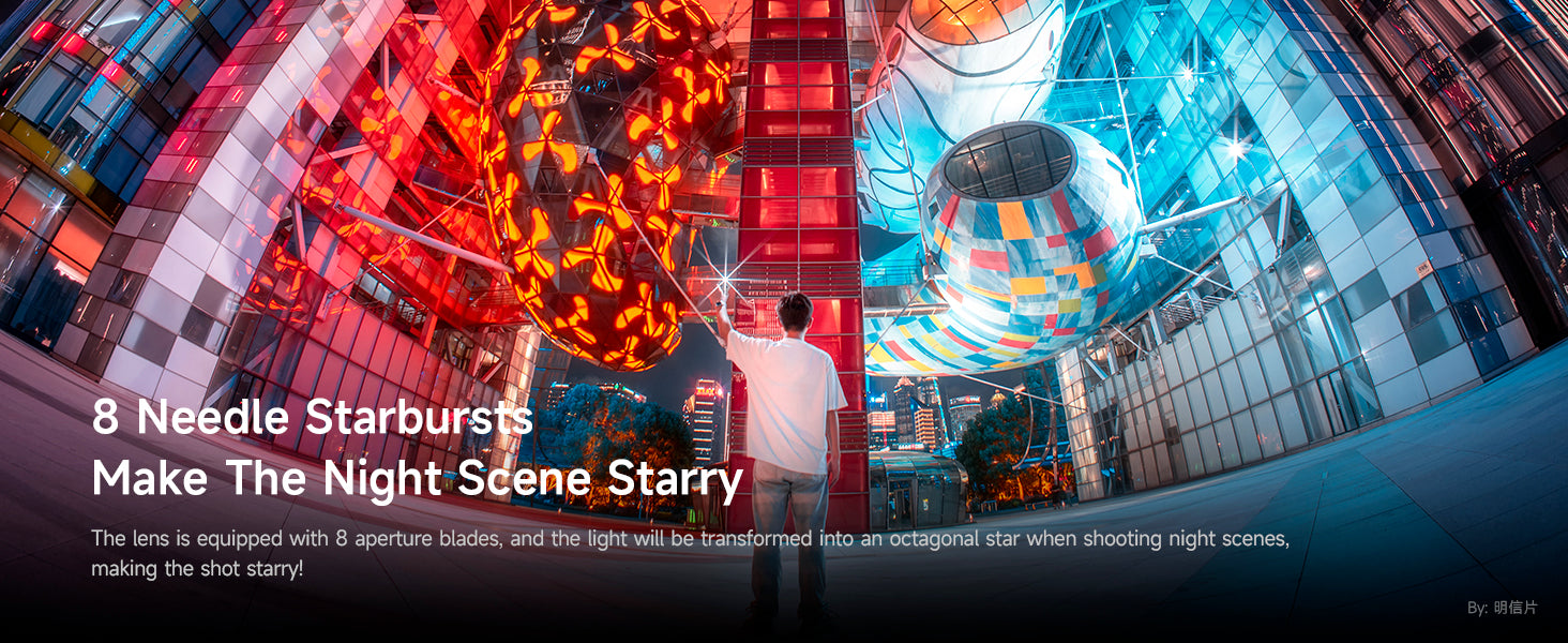 [8-pin starlight] makes the night scene starry, the lens is equipped with 8 aperture blades, when shooting night scenes, the light will turn into an eight-pointed star, making the shooting screen starry.