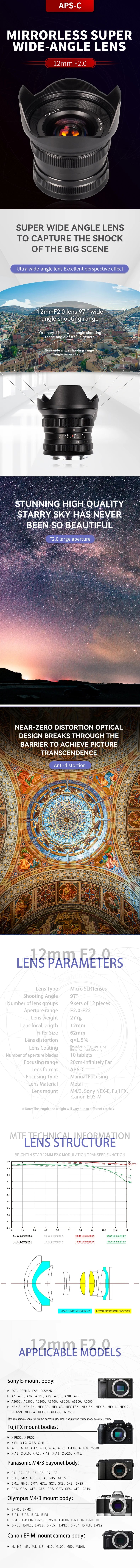 12mm F2.0 Ultra Wide-Angle Big Aperture APS-C Manual Focus Mirrorless Cameras Lens, Fit for Fuji X Mount
